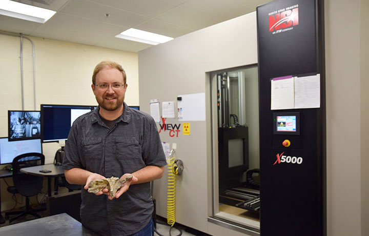 Features the largest CT scanner on the UW campus, the NSI X5000 scanning system, a powerful instrument used for visualizing internal components of objects. The lab features two X-ray sources, a microfocus which allows energies up to 225 kV, and a more powerful but coarser resolution X-ray source with voltages up to 450 kV.
